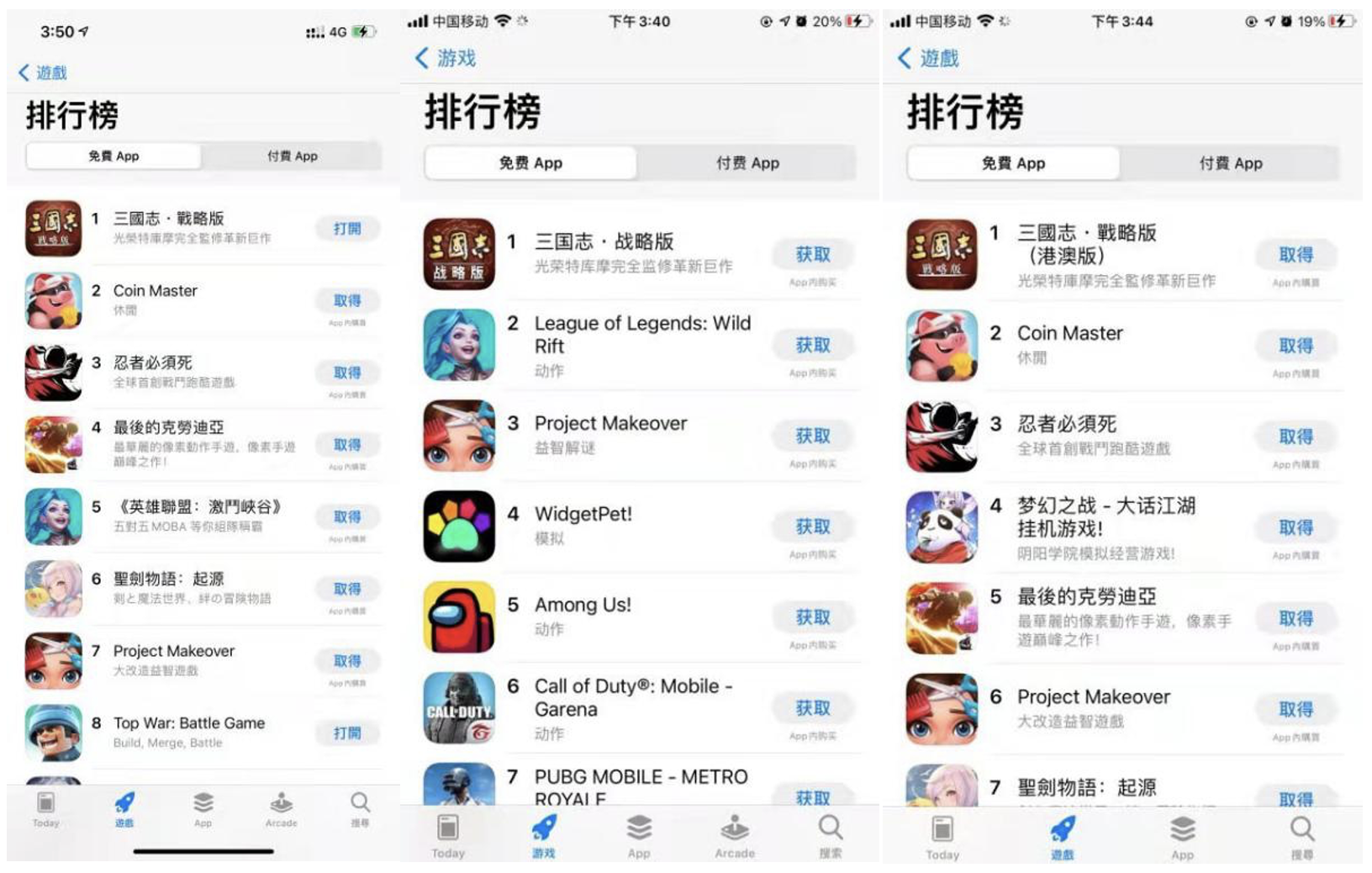 2020年5月和7月,《三国志・战略版》又分别力压国民级 MOBA 游戏《王者荣耀》和 FPS 游戏《和平精英》,两度登顶国服 App Store 免费榜榜首,并长时间稳居畅销榜前10。