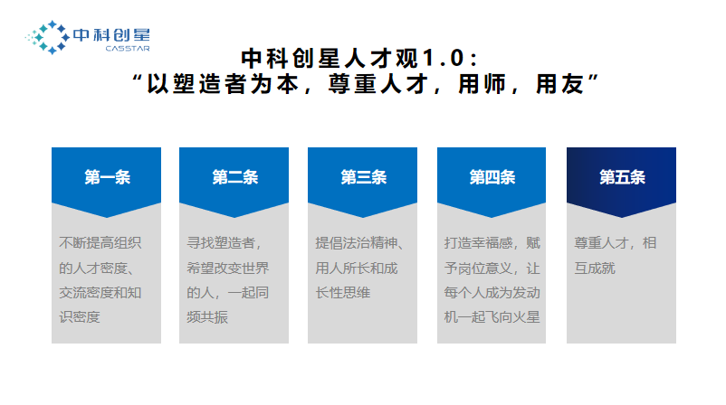 ▲第二条,是阐述中科创星在找什么样的人,希望什么样的同事加入中科创星,以及我们自己未来要成长为什么样的人。这些就是我们定义的塑造者,希望更好的认识世界和改变世界的人。与优秀的人一起同频共振,最终爆发出更强的力量。