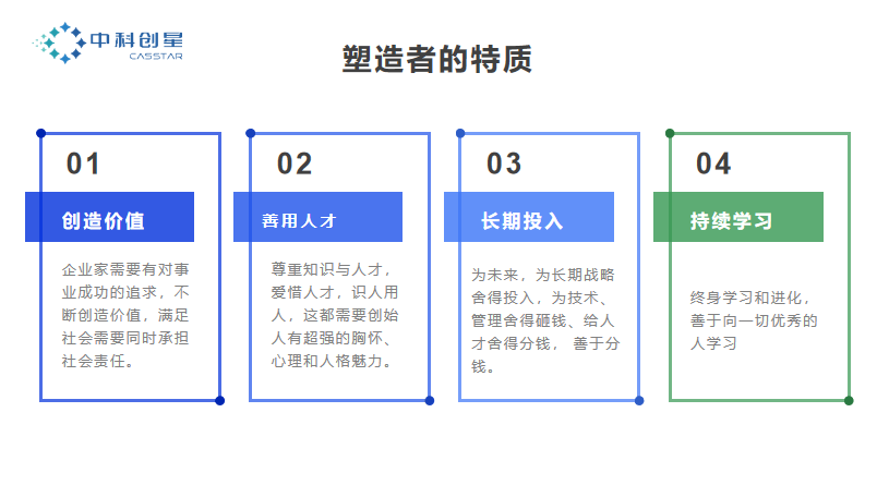 首先要知道我们要达到的目的地是长什么样子的,这个标准就是世界级领先企业的样子。其次,作为一家投资机构,中科创星内部也经常讨论我们的投资逻辑,比如人为先事为重,人就是塑造者。这也回归到中科创星的文化和人才观,以塑造者为本。