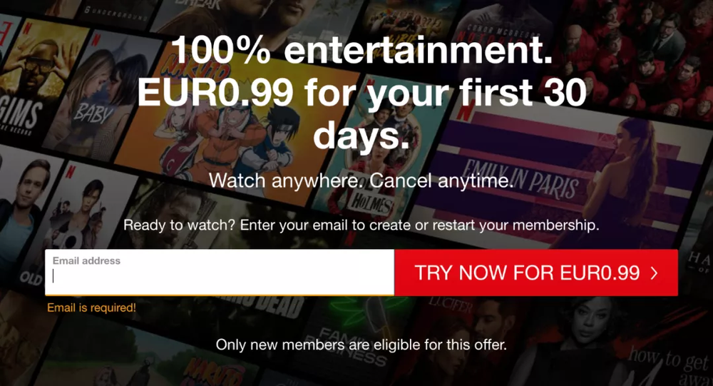 虽然目前美国还未发布新的价格计划,但Netflix已悄悄取消了首月免费试用的机会,不管新用户来自哪个地区,有没有使用过流媒体服务,免费试看正式成为历史。不过首月用户依然有着较大优惠,比如欧洲用户首月体验仅需支付0.99欧元。