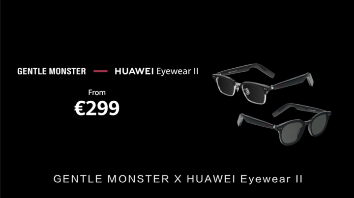 除了新的头戴式耳机,华为还推出了新一代华为智能眼镜,同样是和 GENTLE MONSTER 联名,分为墨镜款和光学款。