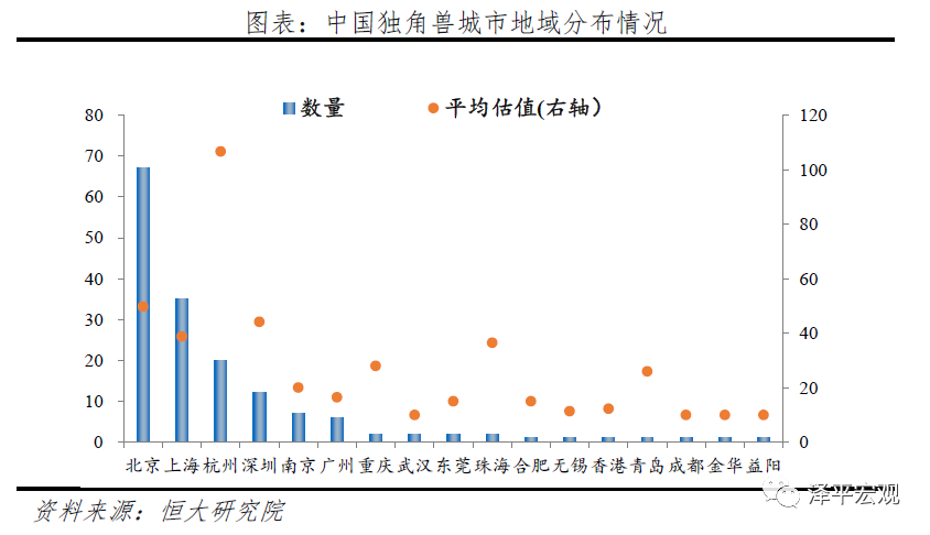 2.1 地域分布:北京独角兽总量第一,杭州独角兽平均估值最高