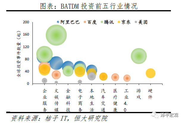 互联网巨头企业成为中国独角兽诞生的重要推手,企业服务领域是巨头目前关注重点。在当前互联网生态化的趋势下,独角兽企业已经成为巨头生态的重要构成。通过自孵化或战略投资等方式,众多巨头企业开始搭建生态系统,并逐渐完善。从榜单中可以看出,大约50%的企业或多或少与阿里巴巴、百度、腾讯、京东、美团等相关联。其中,企业估值越高,巨头对其影响力更强。从估值前十企业来看,与巨头关联程度高达100%。从投资策略来看,阿里巴巴、百度、腾讯、京东、美团是基于各自主营业务和重点布局领域而展开,例如电子商务之于阿里巴巴,搜索和广告之于百度,游戏之于腾讯等。但企业理念影响各自对待被投企业的方式,出于对阿里系生态整体战略的严格控制要求,阿里巴巴26.4%投资事件为战略投资,百度、腾讯、京东、美团投资事件基本集中早期的天使轮和A轮。从投资行业来看,各大互联网企业均加强对包括大数据、云计算等在内的企业服务行业投资力度,企业服务行业是阿里巴巴、百度、京东所投数量最多的领域,分别占各自投资总事件的14%、17.7%、14.2%,是腾讯、美团所投第二多领域,分别占各自投资总事件的11%、12.2%。