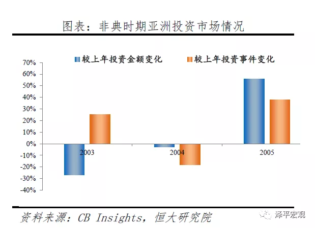 1、新冠肺炎疫情叠加经济下行、金融危机,此次危机影响或远超2003年非典和2015年塞卡(Zika)时期。私募股权投资一直是初创企业重要的资金来源,经济下行、全球资本市场剧烈波动以及疫情全球蔓延加重投资端恐慌情绪,投资机构在受灾当年和下一年将提高投资条件、收紧投资窗口、减少投资行为,创新企业可能缺乏重要的资金来源。从2003年非典时期来看,受灾最严重的亚洲地区私募股权市场受非典影响较大,2003年疫情当年市场投资金额较2002年下降27%,直至2005年投资行为有所恢复。2015年塞卡疫情表现出类似情况,受灾最严重的南美地区2016年私募股权市场投资金额较2015年下降49%,直至2017年恢复。