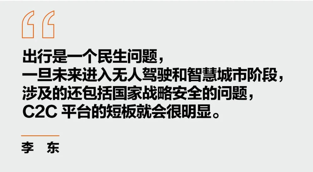 “出行是一个民生问题,一旦未来进入无人驾驶和智慧城市阶段,涉及的还包括国家战略安全的问题,C2C平台的短板就会很明显。”从这个角度来看,李东认为,B2C平台拥有更大的发展空间,这就给了包括T3出行在内的新机会。