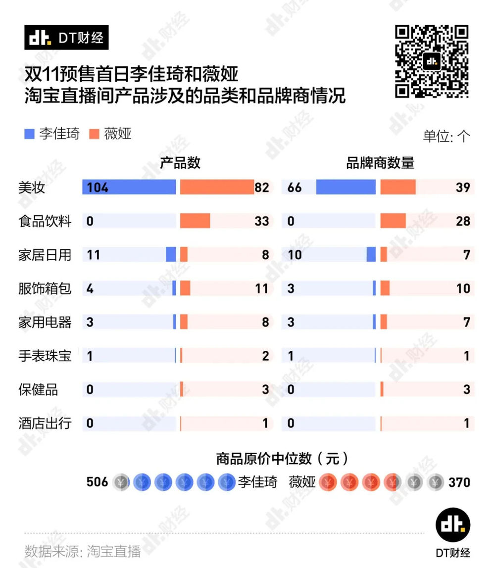 在非美妆品类,薇娅的优势很明显。而在美妆领域,李佳琦直播间的品牌商数量是薇娅的1.7倍。
