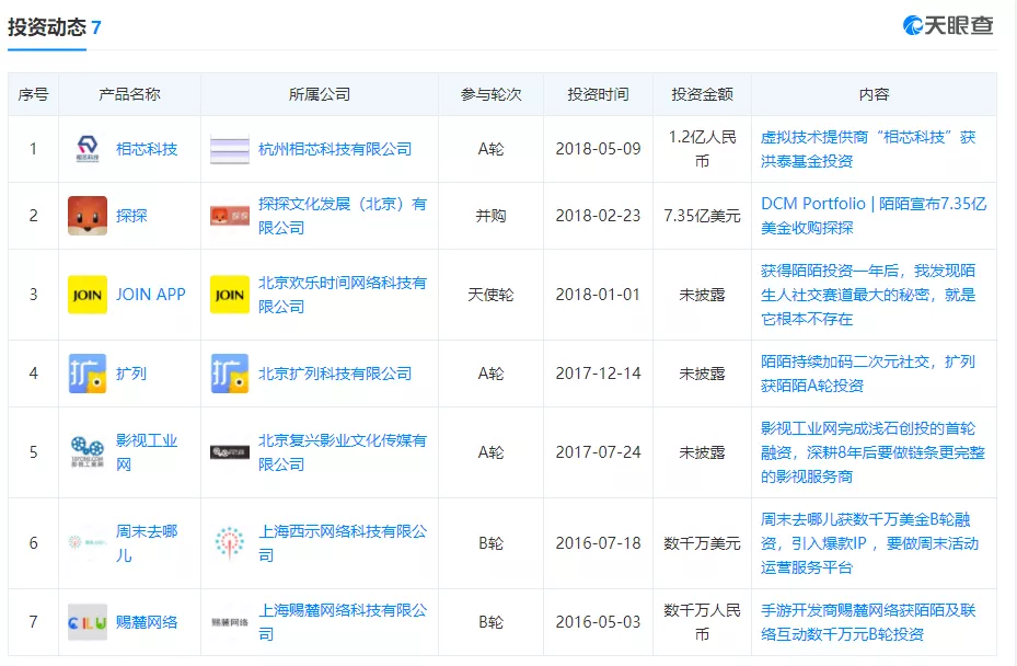 3、2018年起,陌陌曾孵化并投资了多个垂直是社交产品。
