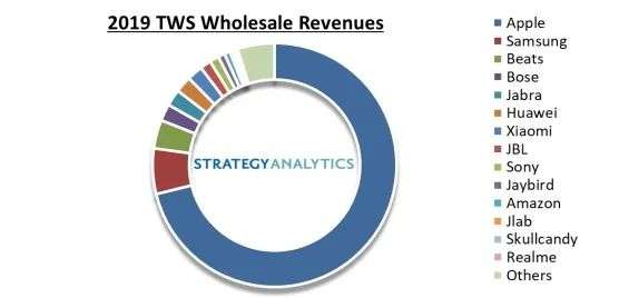 ▲ 2019 年 TWS 市场份额,来自Strategy Analytics