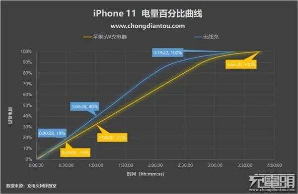 此前苹果附赠的充电器功率输出仅为 5W,被戏称为“五福一安(5V/1A)”,充电速度极慢。直到 iPhone 11 系列,iPhone 11 Pro 与 iPhone 11 Pro Max 才赠送 18W 电源适配器和 USB-C to Lightning 数据线。充电头网曾经测试 iPhone 11 使用原装电源适配器与无线充电的时间对比,结果显示无线充电都比附赠的电源适配器速度更快。"五福一安"不送也罢。