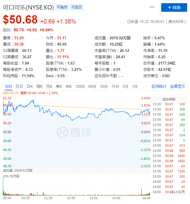 在可口可乐这份最新财报后,其股价在10月22日美股收盘时,涨幅为1.38%。在10月22日美股三大股指集体上行的大背景下,这一涨幅并不算大,但对于二季度遭遇史上最差营收记录的可口可乐而言,也算一剂利好消息。