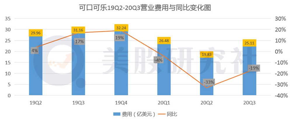 具体到成本层面来看,本季度可口可乐的总营业费用为25.11亿美元,与去年同期的31.16亿美元相比,同比下降19%,与上一季度的19.83亿美元相比,环比上涨幅度为26.6%。