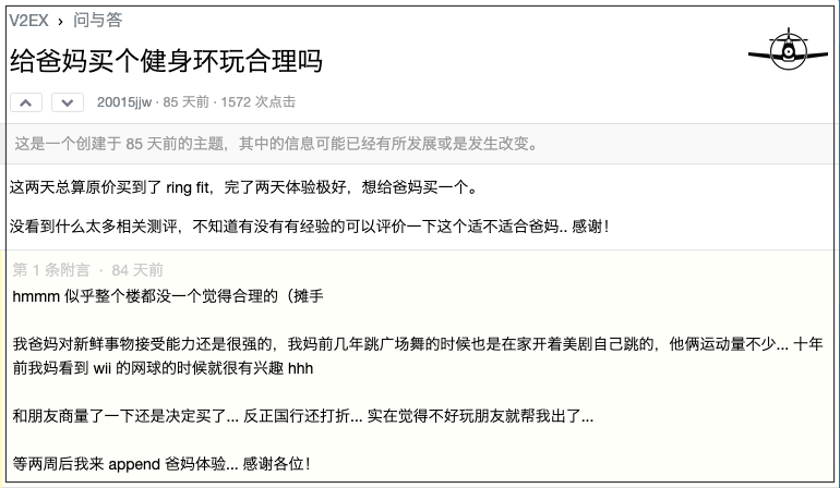 V2EX 上这名的用户,最后还是给父母买了健身环