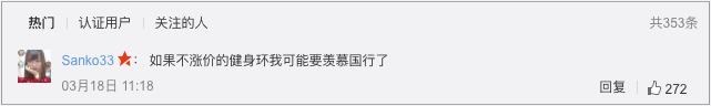 消费者一边「求环若渴」,一边也盼望着市场能够回归理性。今年3月,健身环国行送审消息传开,那时相关微博下的一些热评在诉说着外服版的痛点:价格高、无保修。待到8月健身环过审,「国行真香」已经在一些消费者口中呼之欲出了。