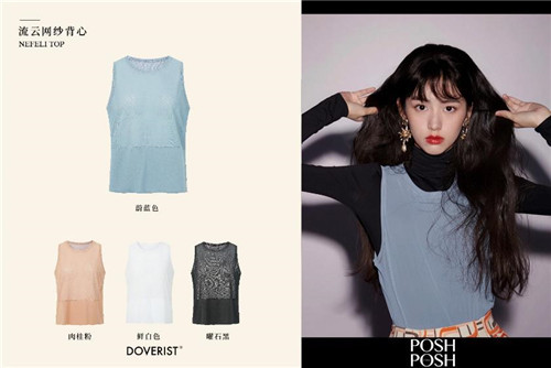 95后新晋小花周也身着DOVERIST 2021春夏新品流云网纱背心出镜《POSH POSH》,从一个电影学院学生到少年的你中魏莱角色的精彩演绎,青春可爱的外表却能将校园霸凌演绎的淋漓尽致。同样DOVERIST背心叠穿的巧妙搭配在她强有力的表现下,展现出了优雅动感,又不失可爱性感。