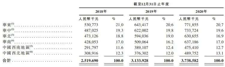 销售区域划分显示,似乎华东、华中地区的消费者更喜欢吃辣条,这两个区域合计贡献了卫龙2020年40.3%的营收。