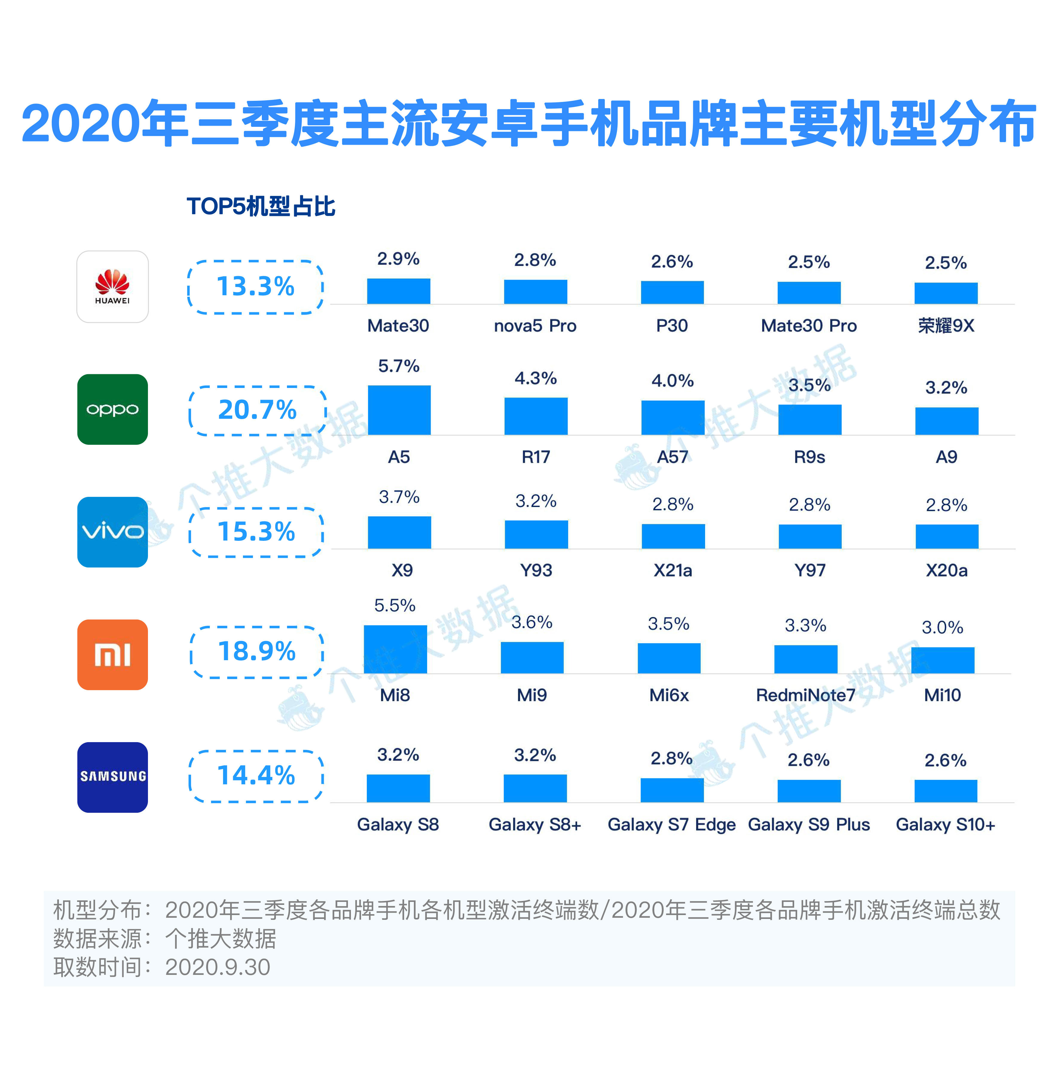 关注完5G手机市场,让我们再来回顾2020年三季度整个安卓智能手机市场概况。