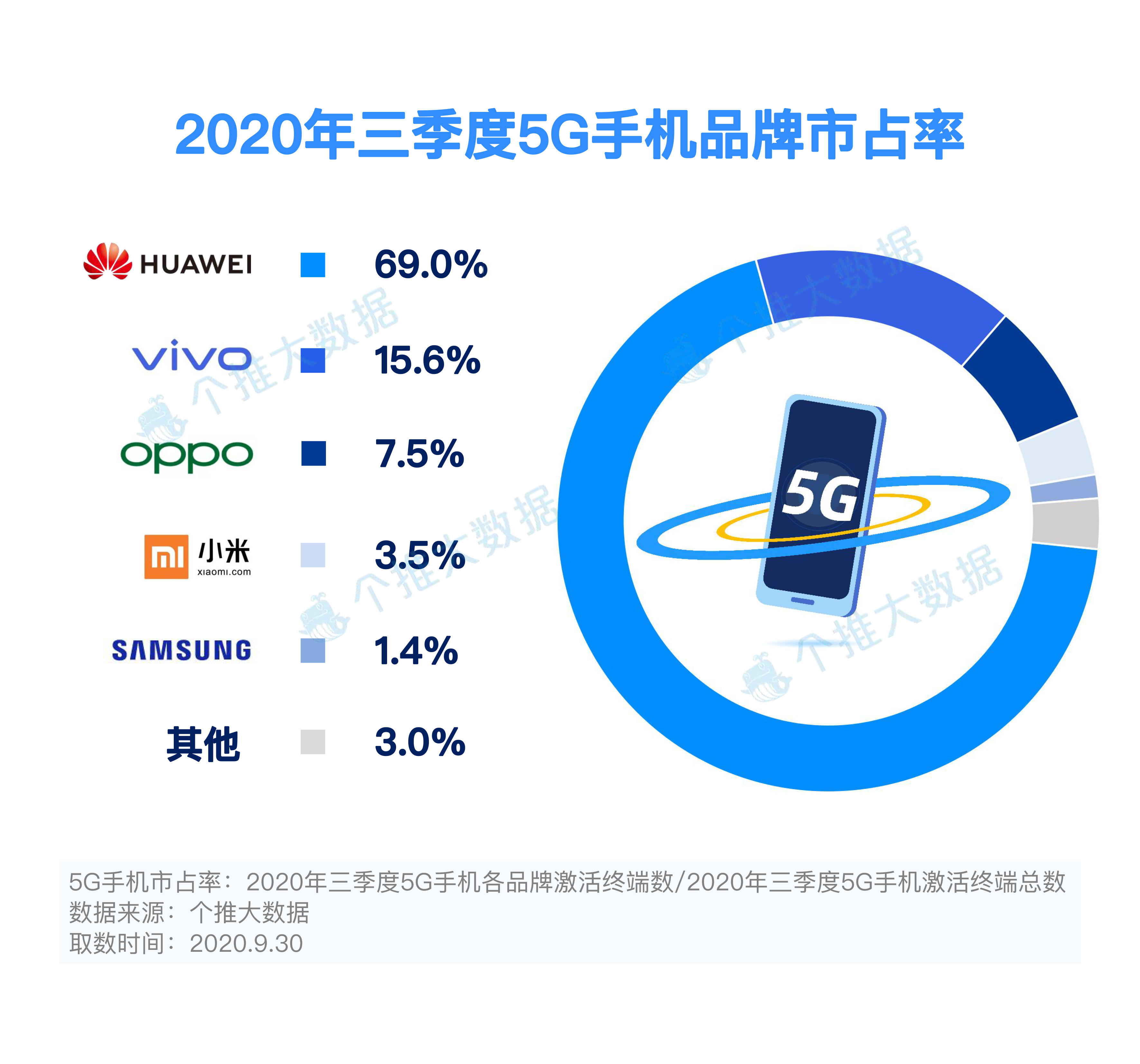 市占率:截至2020年三季度市场上累计激活的各手机品牌终端数/总终端数据