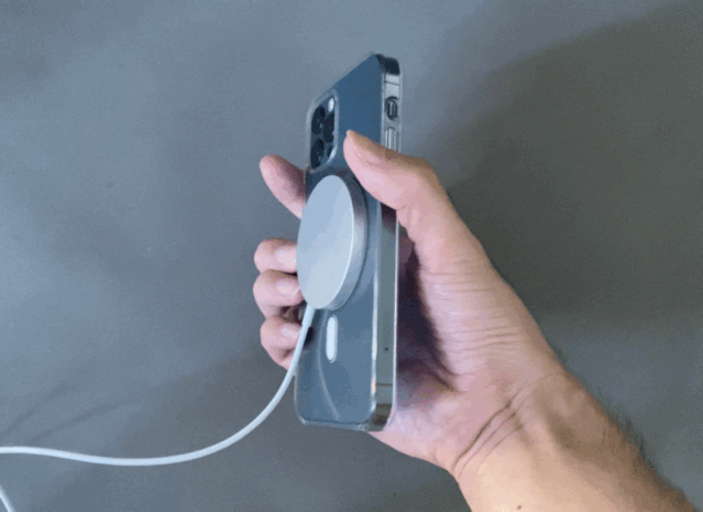 你可以把MagSafe充电器看作是无线与有线相互结合的产物,当iPhone 12 Pro的玻璃背板与MagSage充电器接触时,你会听到啪的一声,屏幕上会弹出一个手机正在充电的动画,整个过程相当舒服。