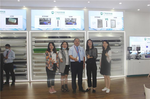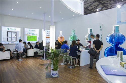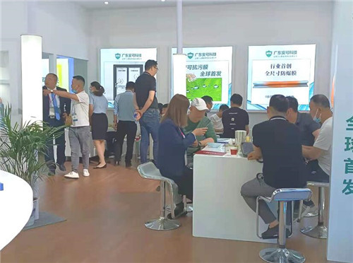 科技与现代结合的展馆,安可科技结合当前疫情严控的形势所需,开发出的三款新品,分别为抗菌膜、抗污膜AK-KW301、超耐磨AK-CN501钻石系列,其抗菌、抗污、耐磨优势很受市场欢迎,吸引众多客商进馆参观;
