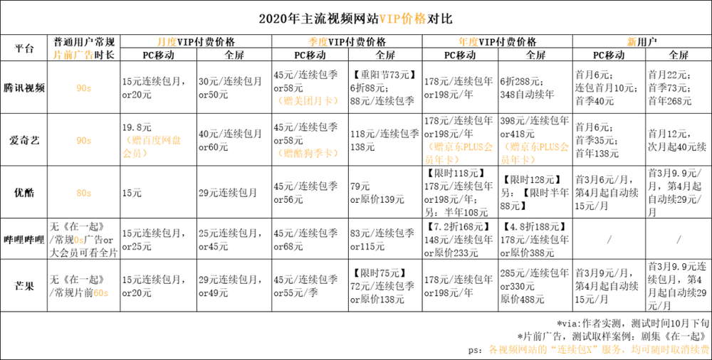 从定价上看,视频网站的付费会员体系可谓是“庞大而精密”。