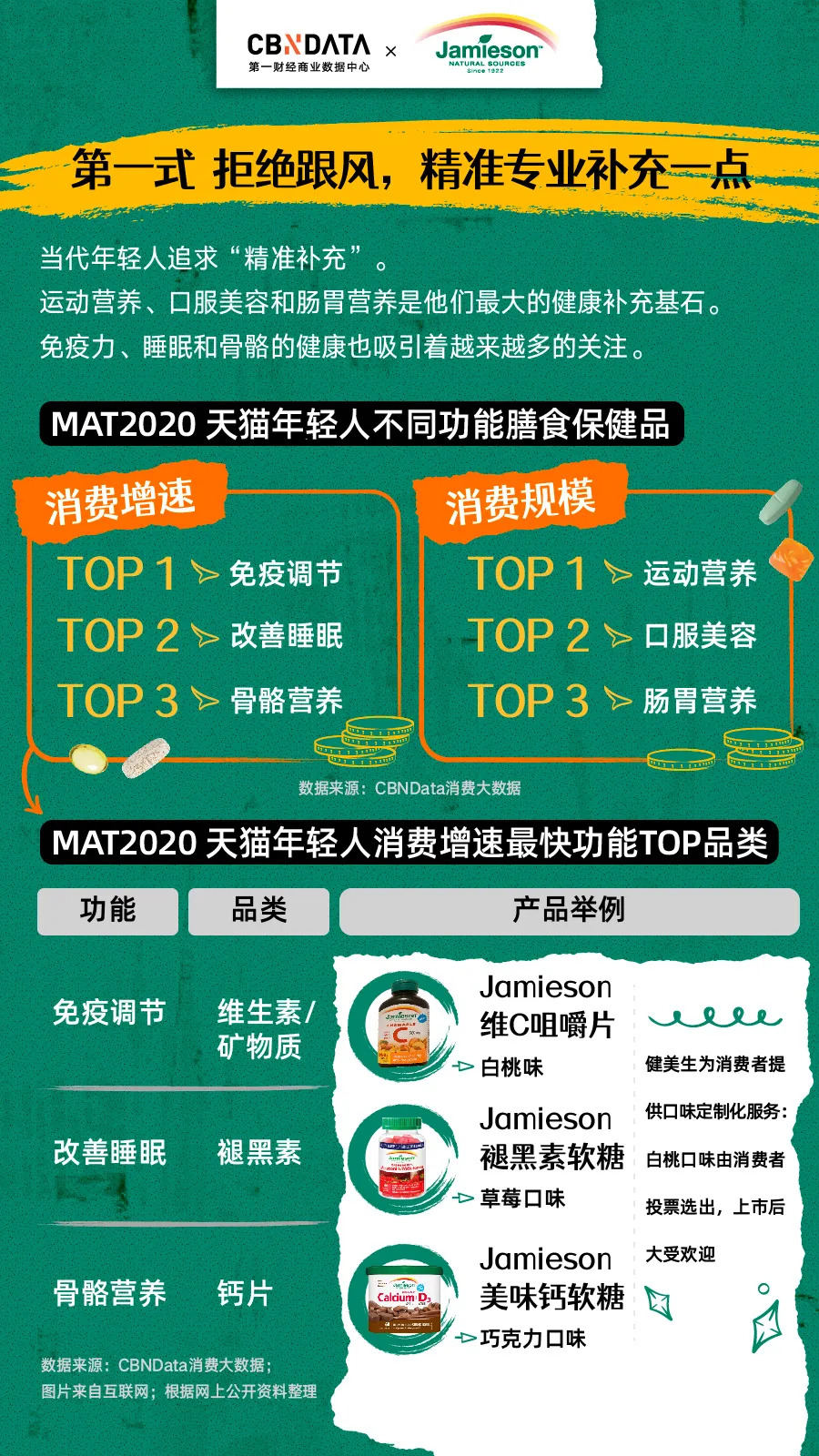 与此同时,免疫调节、改善睡眠、骨骼营养健康等功能产品消费增速较高,比如健美生的维C咀嚼片、褪黑素软糖、维生素D3等产品,精准击中了年轻人免疫力差、失眠等痛点,具有较大的消费潜力。