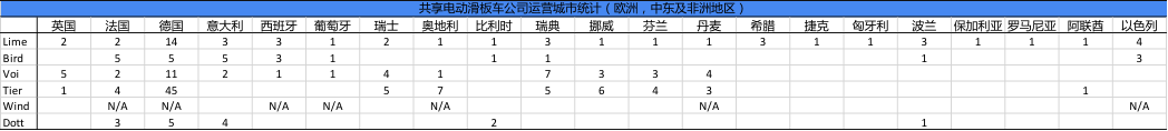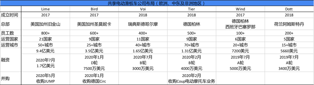 近几年,欧洲共享电动滑板车市场炙手可热。除了最大的两家共享电动滑板车公司Lime和Bird(今年1月收购德国Circ),以及欧洲本土最大的四家Voi、Tier、Wind和Dott以外,Uber、Lyft、Google、Spin、Blablacar等巨头也纷纷入局。