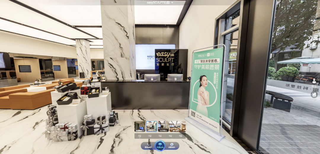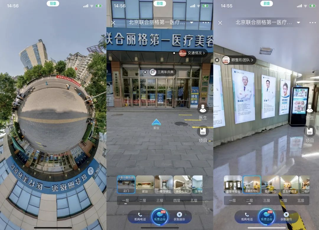 新氧“VR到店”可以将医美门店全景展现在顾客眼前,让求美者能720度无死角、全方位地浏览到门店的全貌,真正实现“所见即所得”。