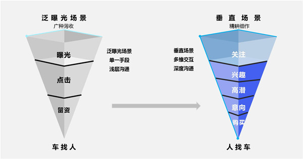 线索的增长实践,印证了垂直平台的独特价值。近两年,KOL、短视频、直播等形式为汽车营销带来新选择,也成为车企、经销商销售线索的新来源,不过,垂直平台的主流地位并未受到挑战。易车作为垂直平台,依靠专业的车型库,大量的内容,便捷的询价工具等,使得其处于营销漏斗的下方,进入影响用户决策,促进交易的最后阶段。毫无疑问,后者带来的线索更精准,质量更高。