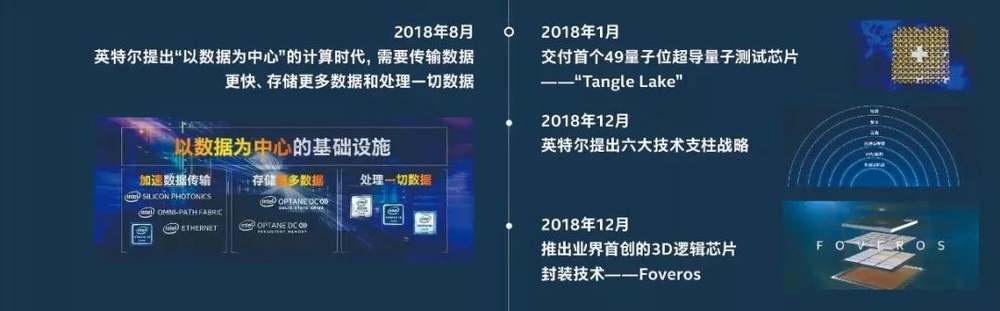 在2018年底,英特尔对外宣布了最新战略目标,也就是以制程和封装、XPU架构、内存和存储、互连、安全、软件六大技术支柱核心,从以往“PC为中心”转向“以数据为中心”的转型目标。