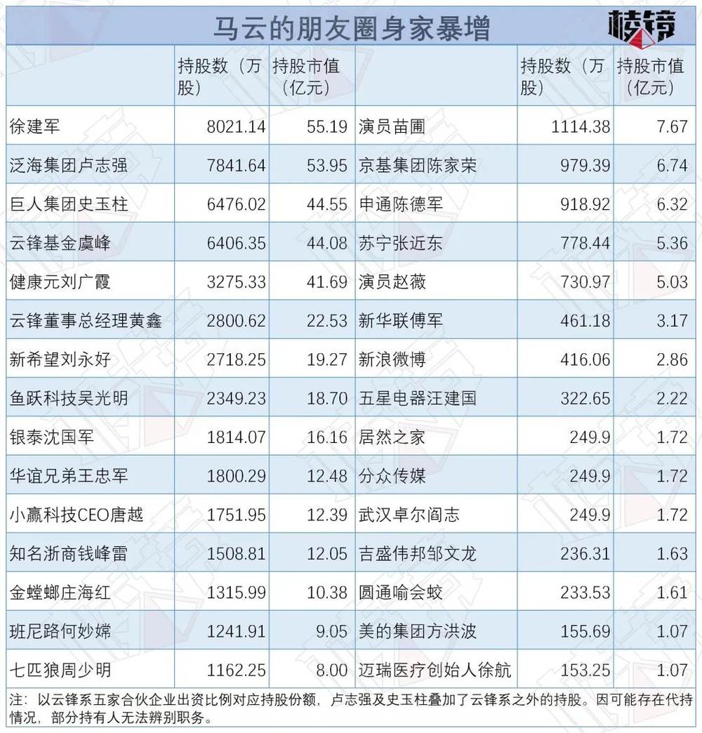 云锋基金由马云、虞峰联合诸多民企大佬创立。层层穿透上述5家机构的合伙人,作者发现,他们可以称之为马云的豪华“朋友圈”。