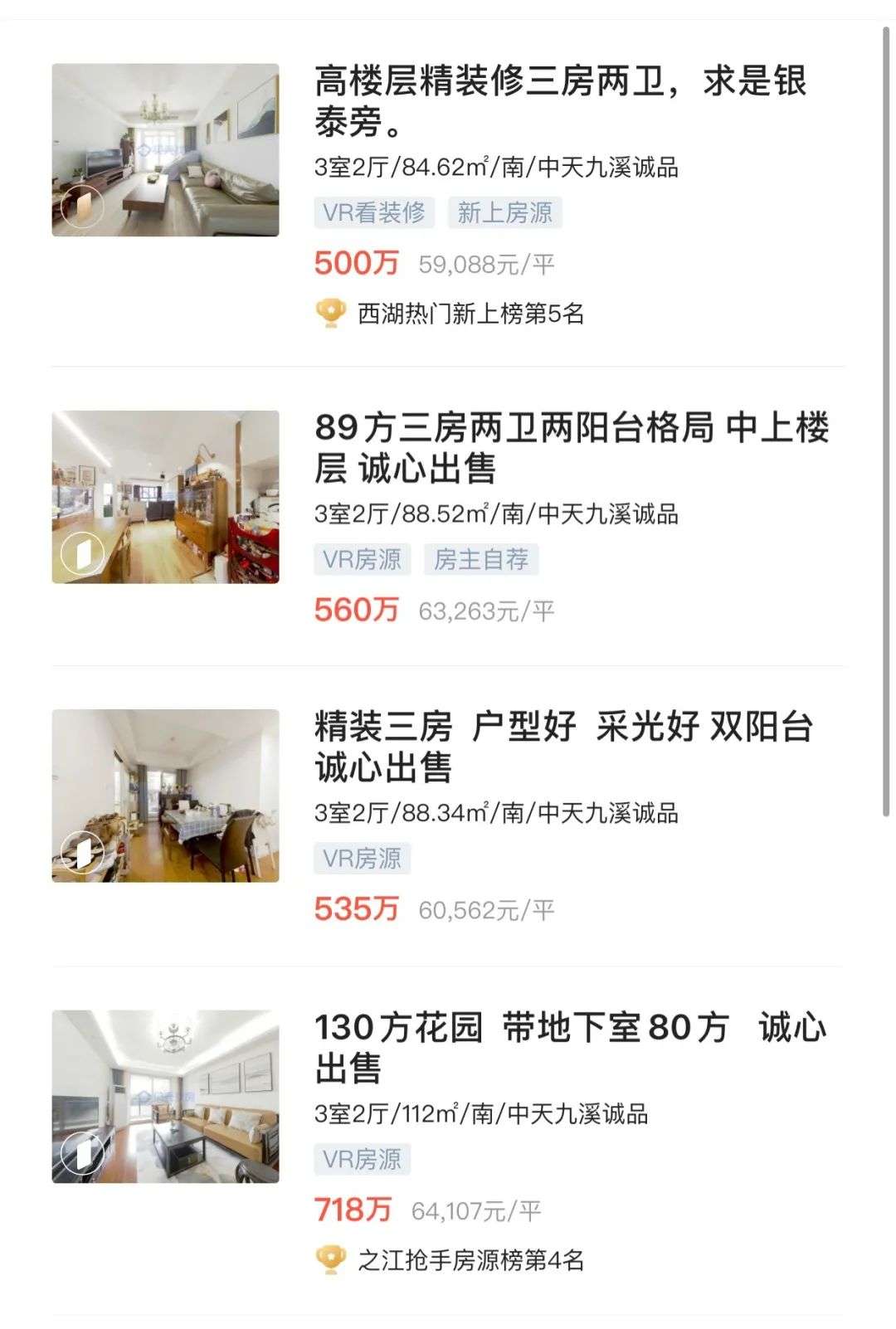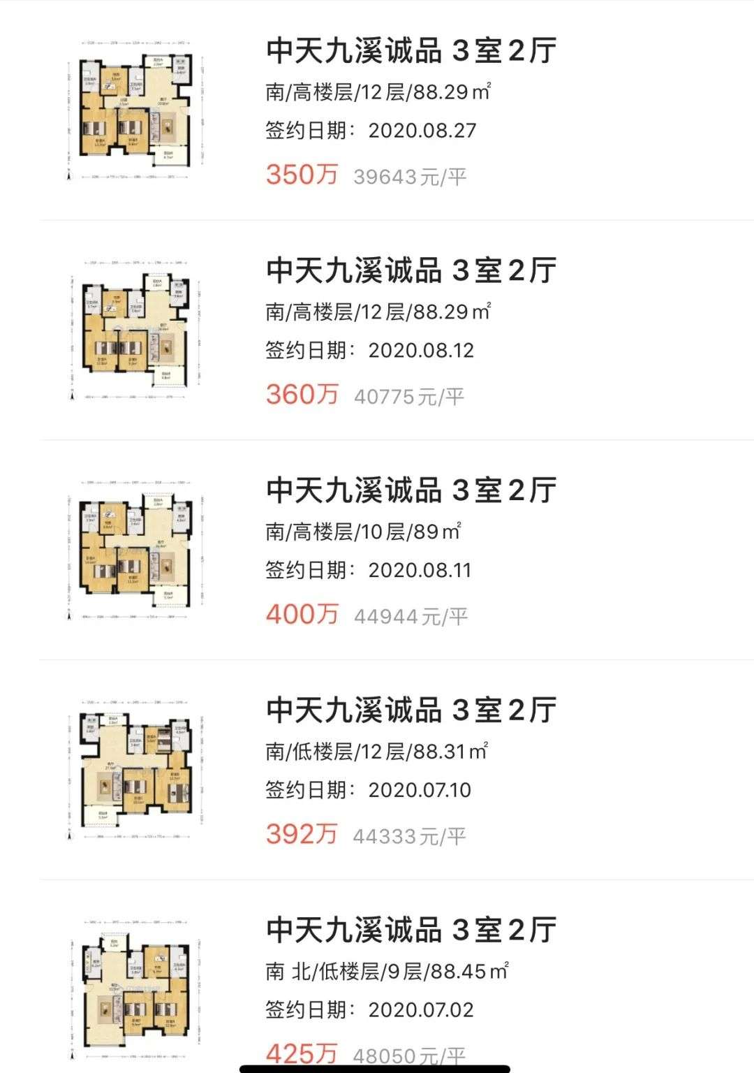 在贝壳上面的成交价显示,中天九溪诚品8月份的成交价才4万出头,但是如今挂牌价齐刷刷的5万/平以上,一些不急卖的业主已经挂到6万/平以上。