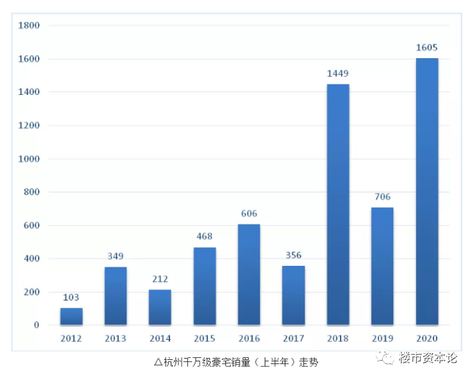 今年上半年,杭州共出售千万级别豪宅1605套,对比2018年上半年,直接翻了一倍。