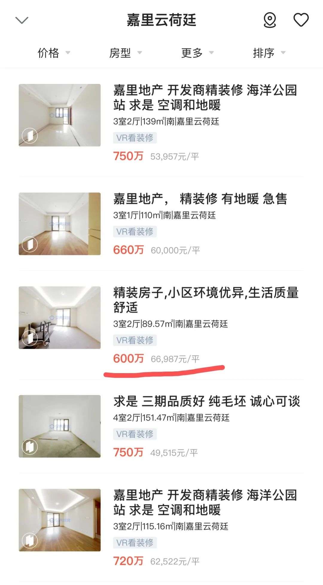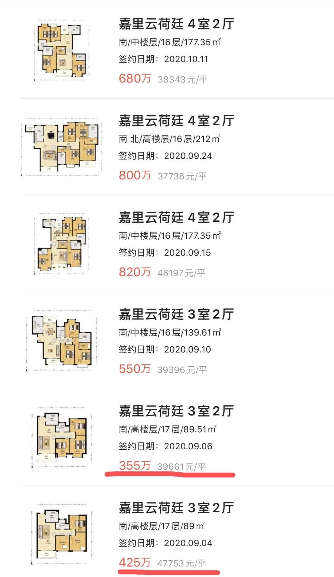 品质较好的嘉里云荷廷涨幅同样惊人,89平的小三房,9月份还卖355万,如今挂牌价已经是600万了,一个月涨了245万,足足涨了一套小户型的总价。