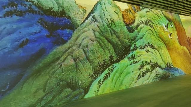 而5G+沉浸式千里江山图则是利用移动5G大带宽、低时延的优势特性,把北宋王希孟传世的唯一作品《千里江山图》,通过5G+沉浸式全息投影,借助高倍像素填充率和纹理速率增强云端渲染,利用增强型着色和反向着色将画的表达方式不断创新升级,使历史传承下来的画作展现出更多新的可能性,呈现出一个叹为观止的《千里江山图》艺术沉浸空间,让千里江山图动起来,给你"坐地日行八万里"的感觉,让观众置身其中,与科技对话,与传统艺术交流。