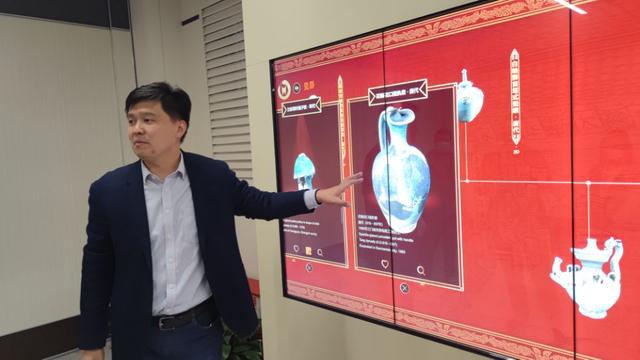 触摸展示屏上文物,能够进行360°自由旋转、放大缩小、欣赏文物高清文理、结构等深度信息,还可以扫描二维码与微信好友分享。这是河南博物院通过5G技术打造的可供多人实时触动的三维国宝魔墙,通过三维模型和二维图片展示将馆藏珍贵文物"送"上云端。