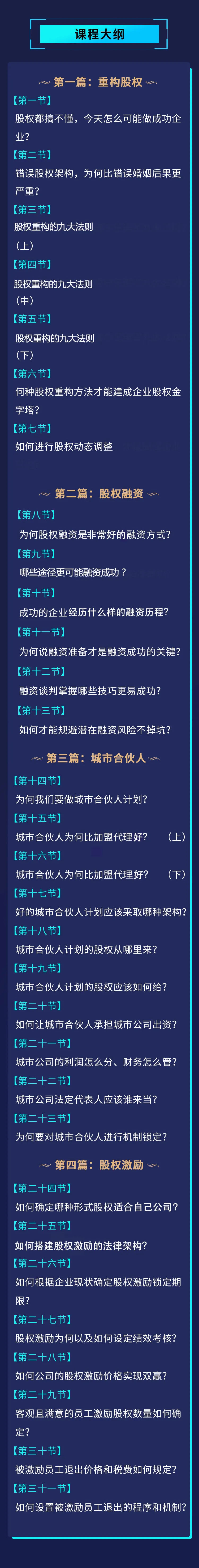 所以今天,创业邦为你带来了知名股权律师王英军的系列音频课程《股权实战课》,从股权激励、股权重构、股权融资、合伙人四大板块为你讲解股权“那些事儿”。