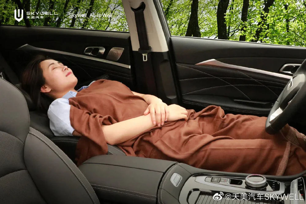 与其他造车新势力主打的辅助驾驶系统、长续航等卖点不同,天美ET5的主要卖点是全球独创的健康午休睡眠系统等智能黑科技。消费者只需轻触车机屏幕,打开“健康午休”模式,就能在电动调节座椅上午睡。