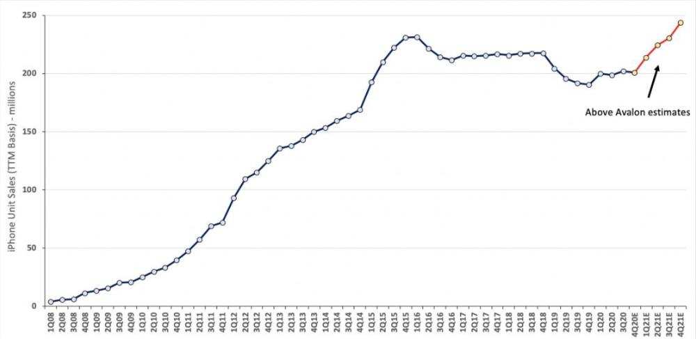 在过去的两年里,iPhone的销量经历了显著的波动。2019年初,由于受到国际贸易紧张相关的影响,苹果iPhone销售出现实质性疲软。尽管苹果首席执行官蒂姆·库克(Tim Cook)在提出这样的说法时面临某些质疑,但这种观察后来被证明是合理的,因为其他许多公司继续陷入了类似的需求放缓。