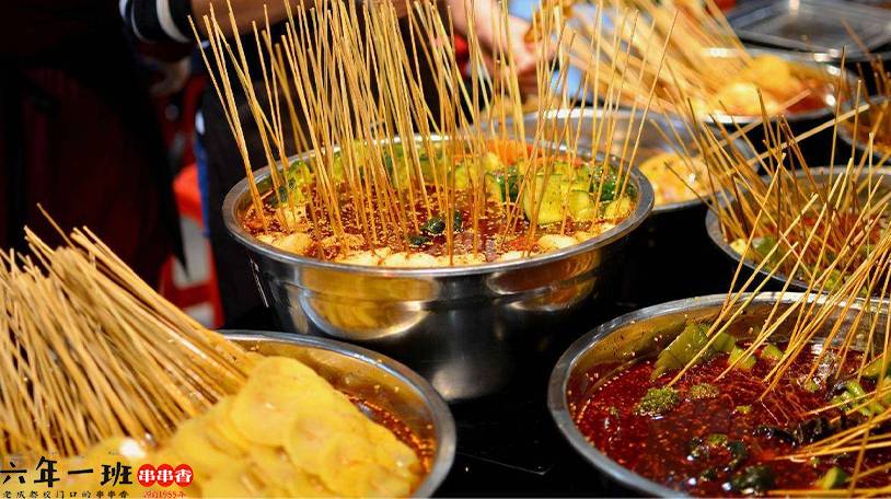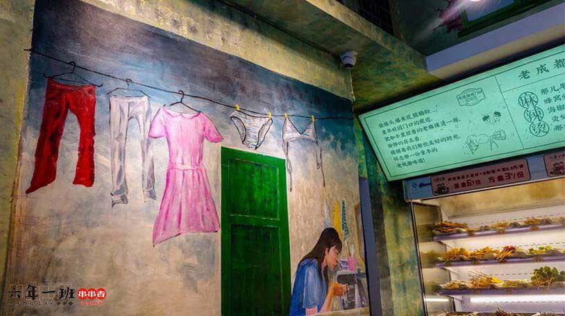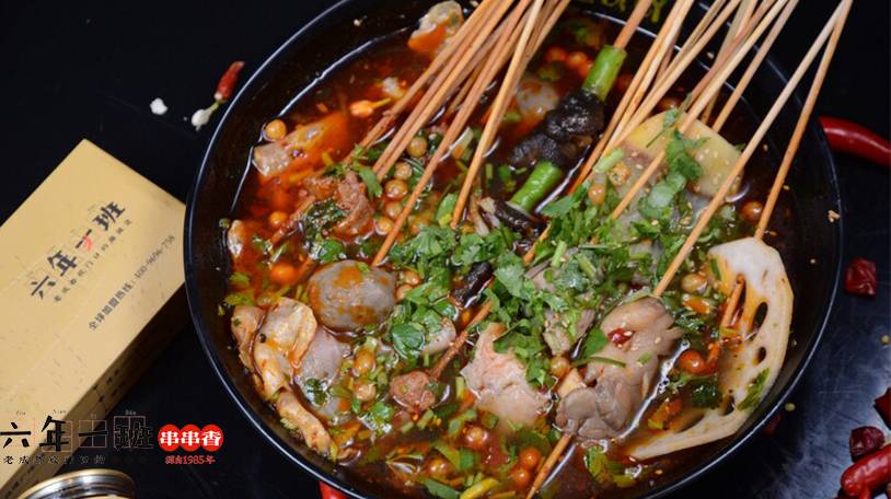 六年一班串串香属于成都瑾睿餐饮管理有限公司运营管理,店招以黄色为主打色,内部装饰以蓝色餐桌椅搭配,六年一班串串香主打70年代怀旧风格,采用锑锅锅底,产品结构、莱品口味踏上质地飞跃。六年一班串串香沿袭老成都麻辣烫整体口味,店里采用老成都风格的墙绘,古朴怀旧的物件,还原70年代老成都麻辣烫记忆,欢迎各位投资者关注六年一班串串香品牌专栏。