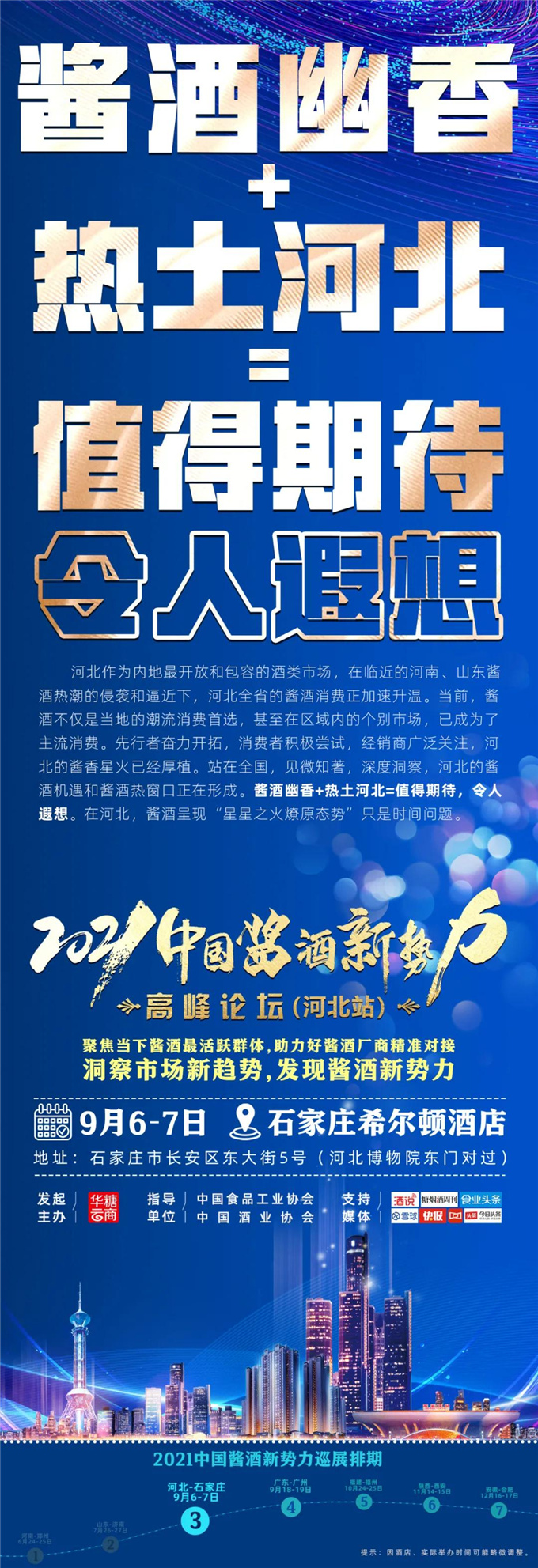 9月6~7日,2021中国酱酒新势力高峰论坛(河北站)将在希尔顿酒店举办,这里给你想要的答案。