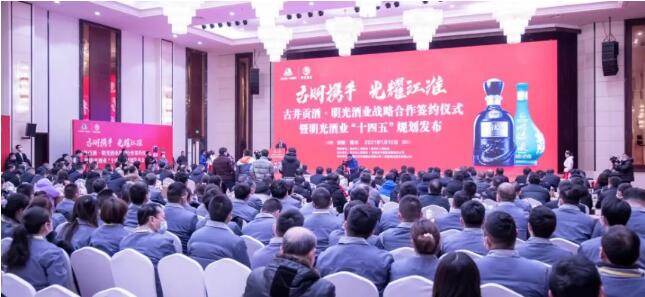 2021年1月10日上午,古井贡酒•明光酒业战略合作签约仪式暨明光酒业“十四五”规划发布会在明光举行。