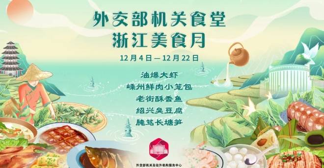 外交部机关食堂浙江美食月将于12月4日至12月22日举行,应外交部服务中心邀请,经浙江省餐饮行业协会、绍兴市外事办、绍兴市商务局推荐,浙江省