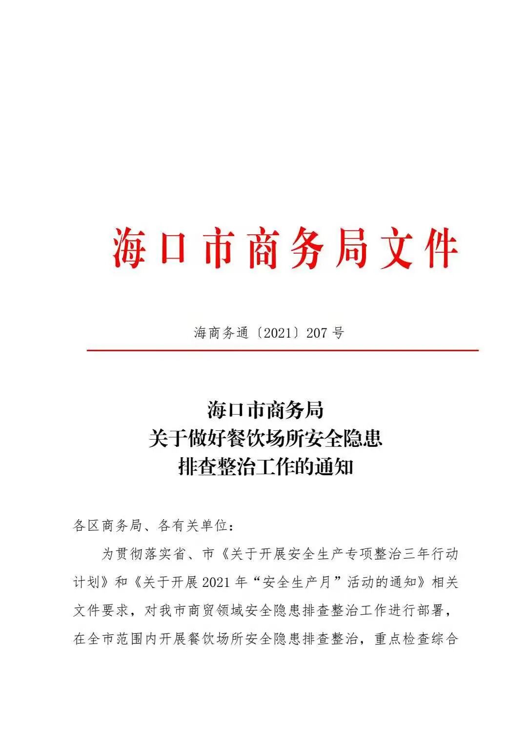 海口市商务局关于做好餐饮场所安全隐患排查整治工作的通知
