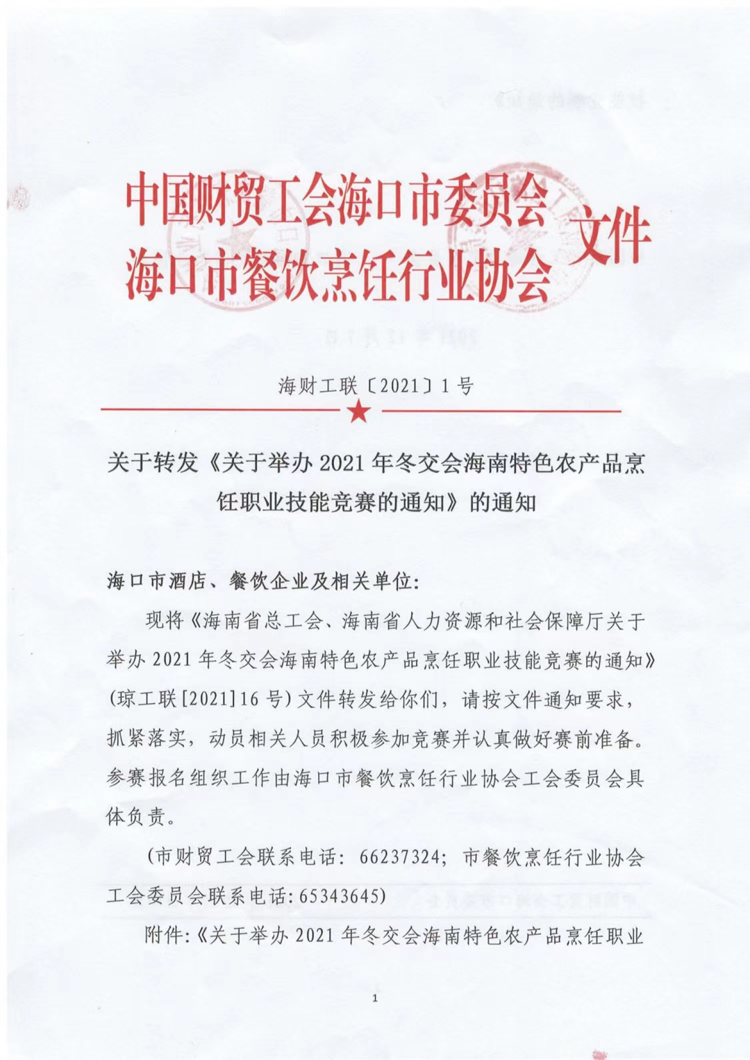 关于转发《关于举办2021年冬交会海南特色农产品烹饪职业技能竞赛的通知》的通知