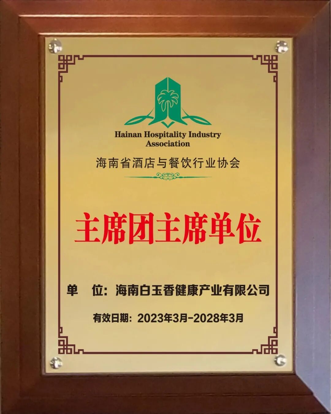 经海南省酒店与餐饮行业协会研究决定,增选海南白玉香健康产业有限公司为第四届理...