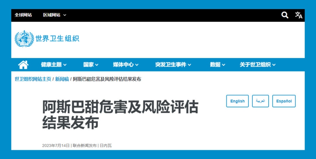 世卫组织刊文:阿斯巴甜每日限量内可放心食用