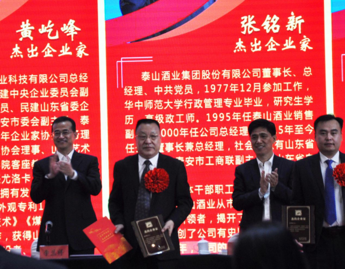 热烈祝贺泰山酒业集团董事长张铭新荣膺“泰安市杰出企业家”称号!