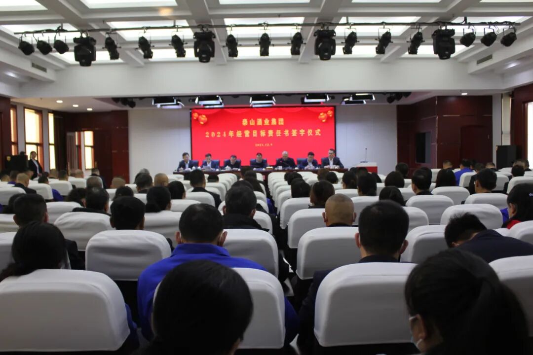 12月9日,“泰山酒业集团2024年经营目标责任书签字仪式”在营销大楼会议室举行,公司领导、主管以上管理人员、班组长、职工代表参加