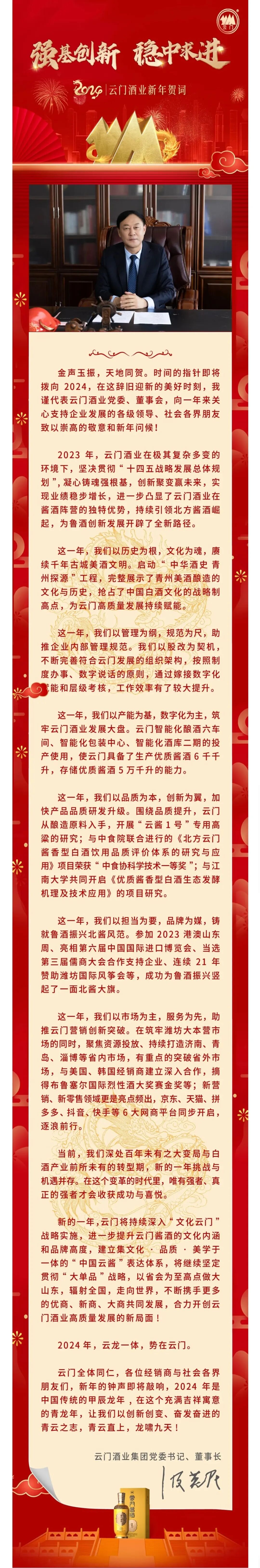 云门酒业集团党委书记、董事长汲英民发表二〇二四年新年贺词