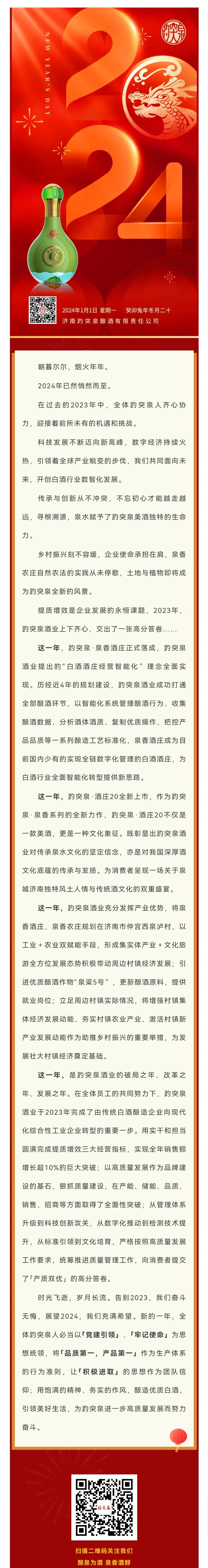 趵突泉酒业2024新年贺词 | 奋楫扬帆启新程 笃行不怠向未来!